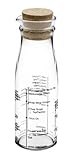 La bouteille idéale pour préparer votre vinaigrette préférée : les graduations indiquent les quantités précises des ingrédients à utiliser. 5 différentes recettes de vinaigrette inscrites sur le côté de la bouteille.