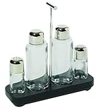 Alessi - FS05 1X3 - Programma 8 - Service Huile, Vinaigre, Sel et Poivre en Acier Inoxydable 18/10 Brillant - Bakelite et Verre