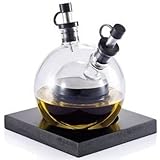 Avec ses deux sphères imbriquées l'une dans l'autre, le Set huile et vinaigre Planète est à la fois atypique et élégant. Les capuchons sont équipés d'un système anti-goutte. Ce set est livré sur un plateau noir recouvert de gomme. Dimensions du globe : diamètre 8 cm / hauteur 11,5 cm